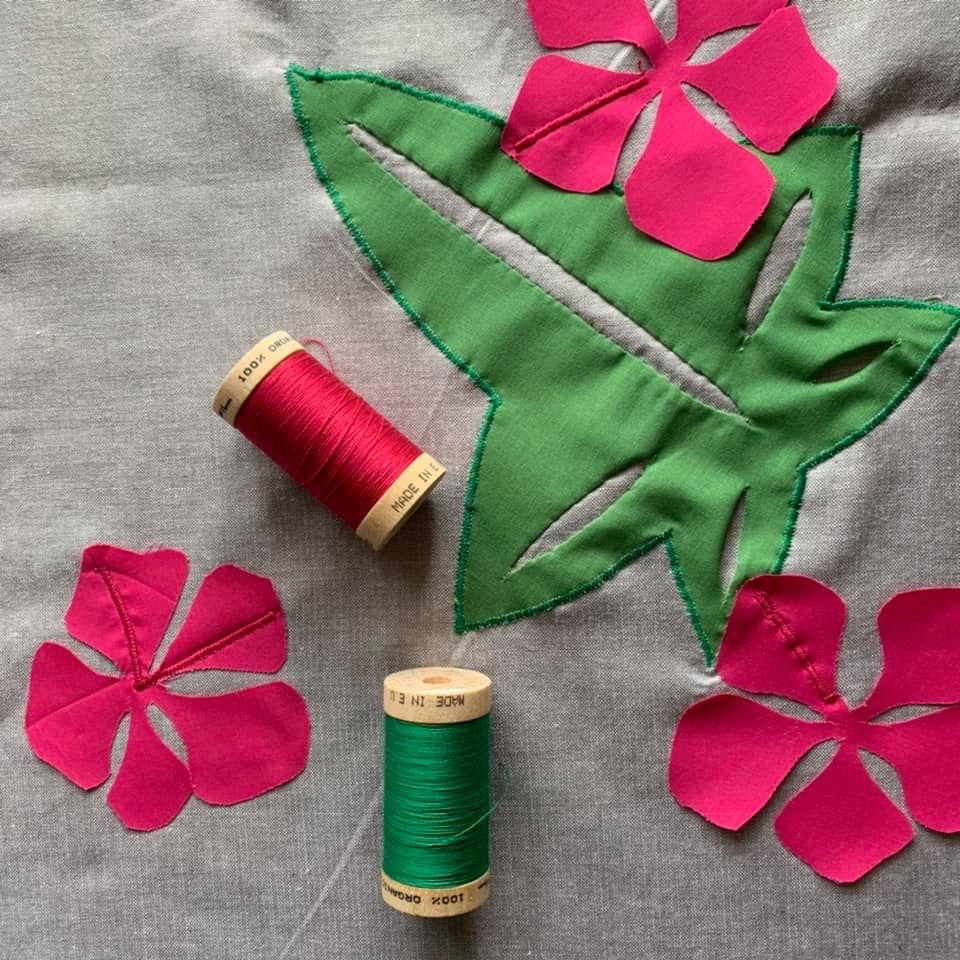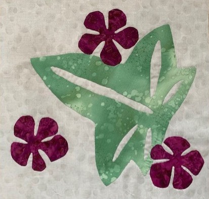 I was lucky to have been chosen to publish the first of these blocks – a Hawaiian inspired block based on my own garden. I had been playing with a little Hawaiian appliqué for my new Doris sampler quilt and loved the process and effect. When the idea was suggested that the Bloggerati, as we call ourselves, come up with an idea for free pattern for blocks based on flowers I knew exactly what I would do.