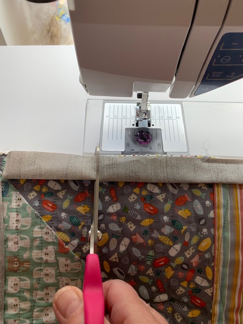 Now we come to joining the binding. Trim one end of the binding in the middle of your gap, the section you haven’t joined yet.