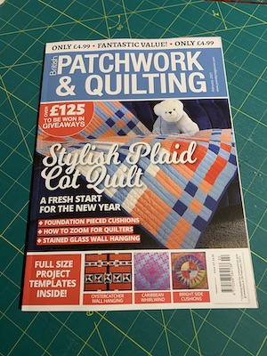 Finally, my copy of February’s British Patchwork and Quilting magazine arrived in which, is my feature on the lovely Portishead Quilters and their efforts to make quilts for veterans. A fantastic project and was a privilege to write. You can also see my Ombré Bubbles quilt from the last issue here too!