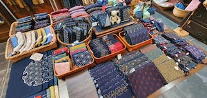 What a treasure trove of beautifully crafted work: From cushions to umbrellas, wallhangings to kitchen items and fans. The different patterns which make this needlework so distinctive can be seen. As a gift they very kindly brought me back a skein of Sashiko thread in white, although you can get it in a rainbow of colours and even some with a little sparkle. Sashiko thread is not like the embroidery threads we commonly use. It is a single wound strand which would move with the base fabric and leave the repaired item stronger than it was originally. The stitching also added warmth to the garment.
