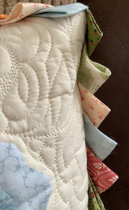 It was beautiful to quilt, with a ‘body’ which works brilliantly for quilting. You can see how well the wadding puffed against the stitching. I feel this would be a good wadding to partner with a top layer of wool or poly for extensive free motion (which gives that extra pouf that looks so nice).